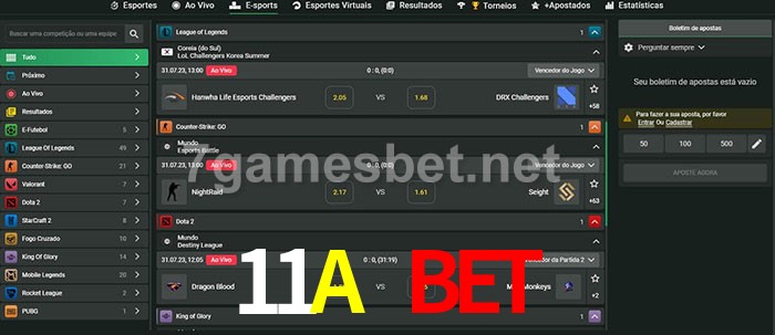 O 11A Bet oferece uma grande seleção de opções de apostas em e-sports com probabilidades competitivas